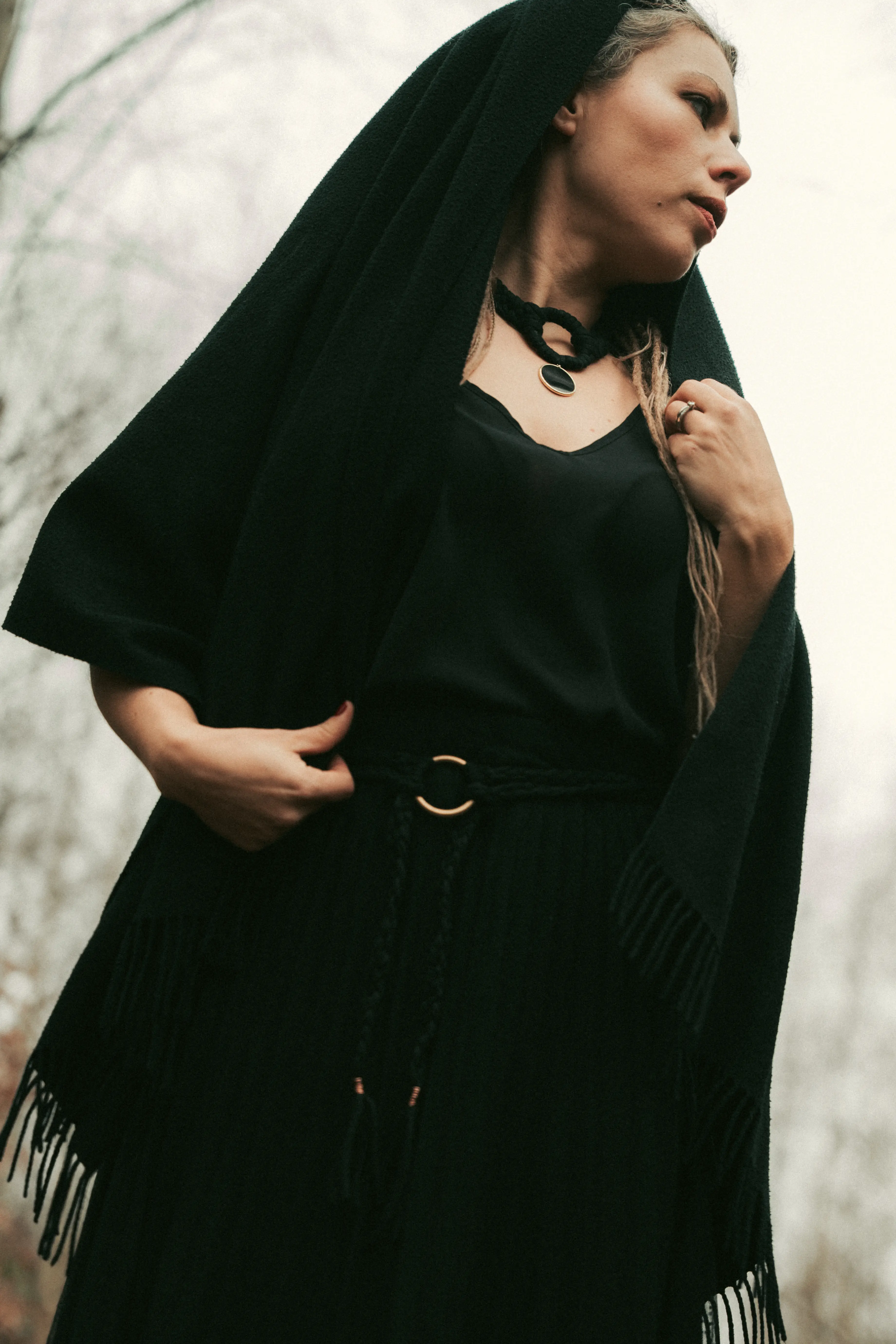 Dunkel, mystisch, stark – ein Gürtel für Abendlooks, Wald-Ästhetik und dramatische Silhouetten.